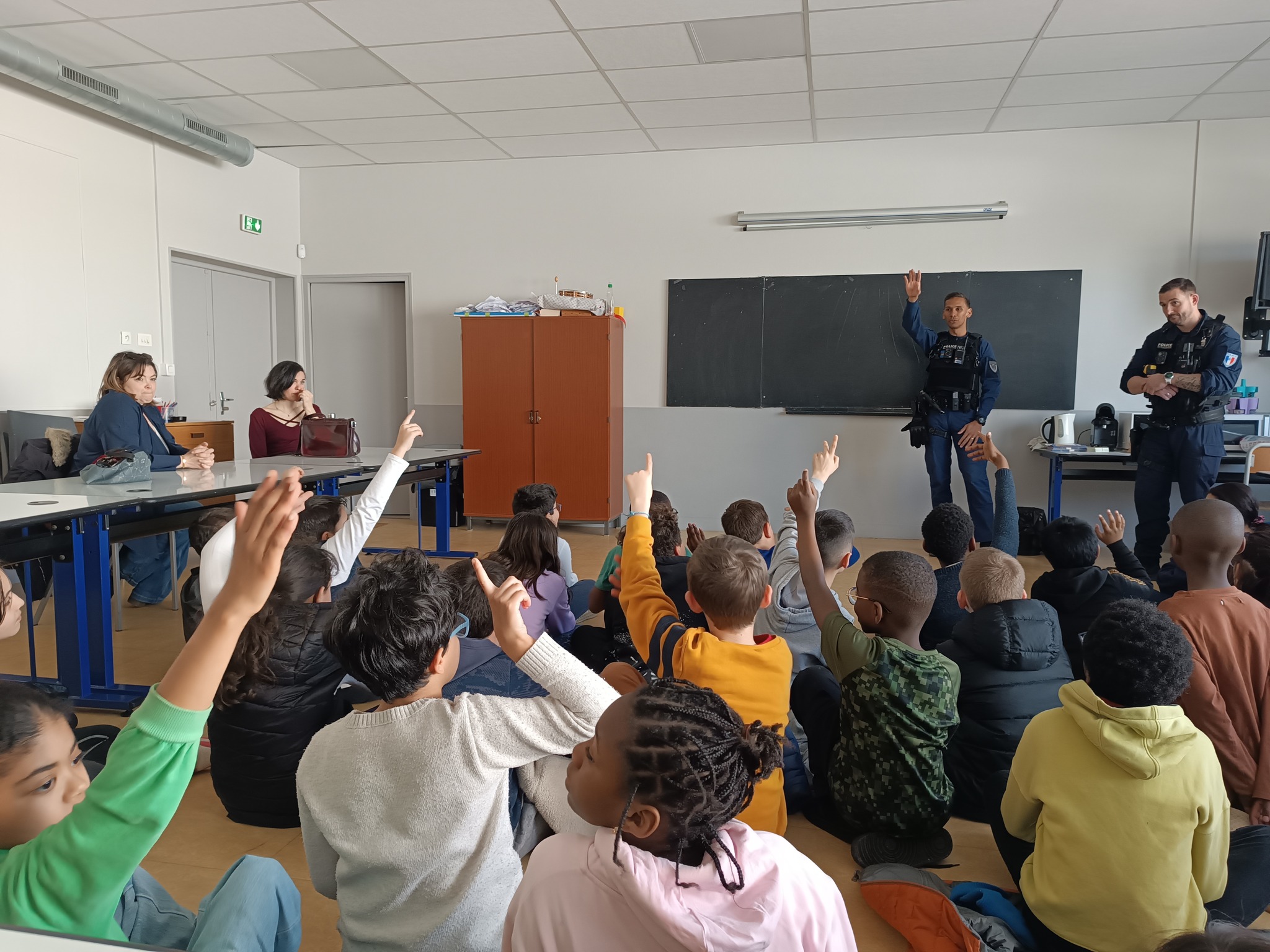 Cet après-midi, au Petit Nice, les agents de la police municipale ont rencontré les élèves de CM2 pour une initiation au permis cycliste, dans le cadre de la dynamique de prévention initiée par la ville.