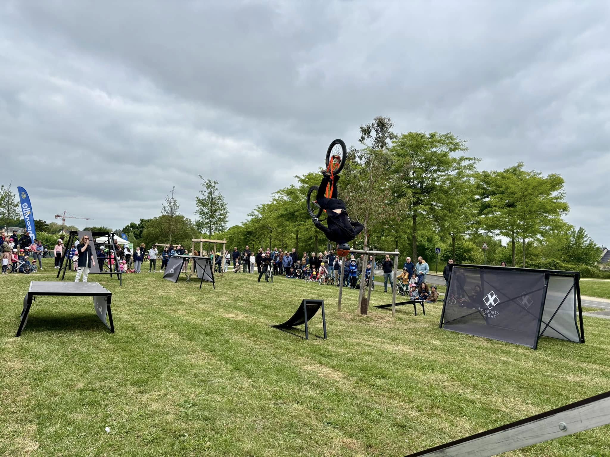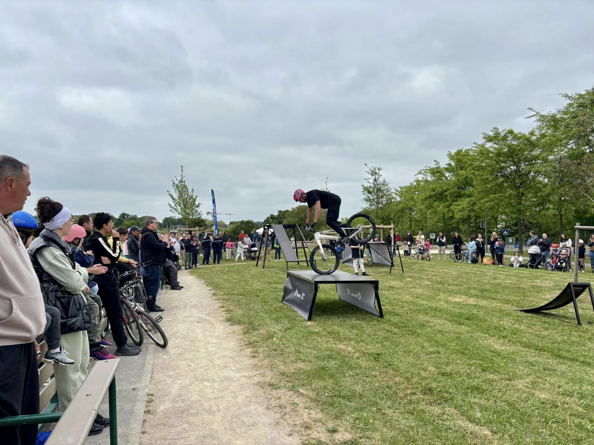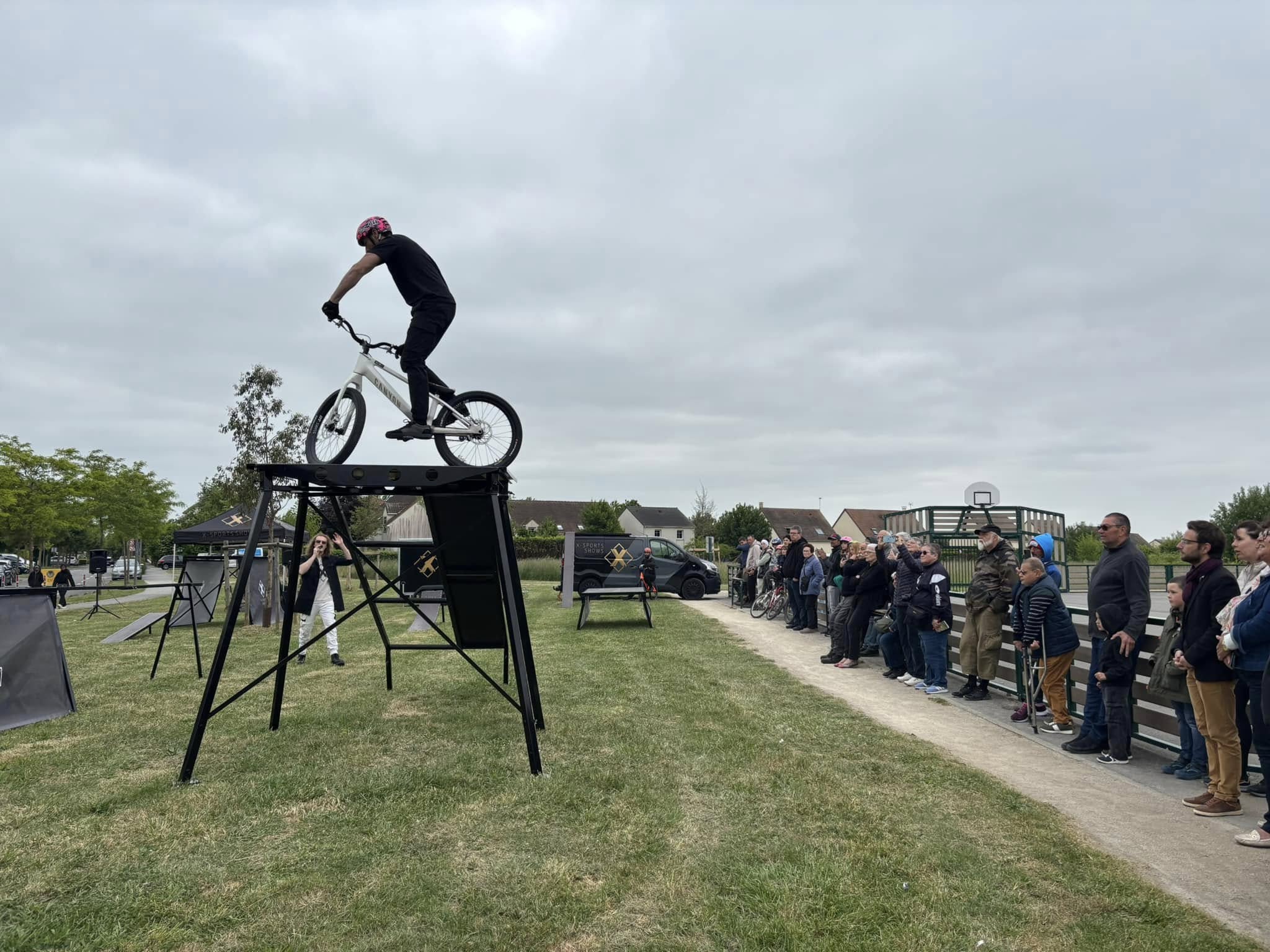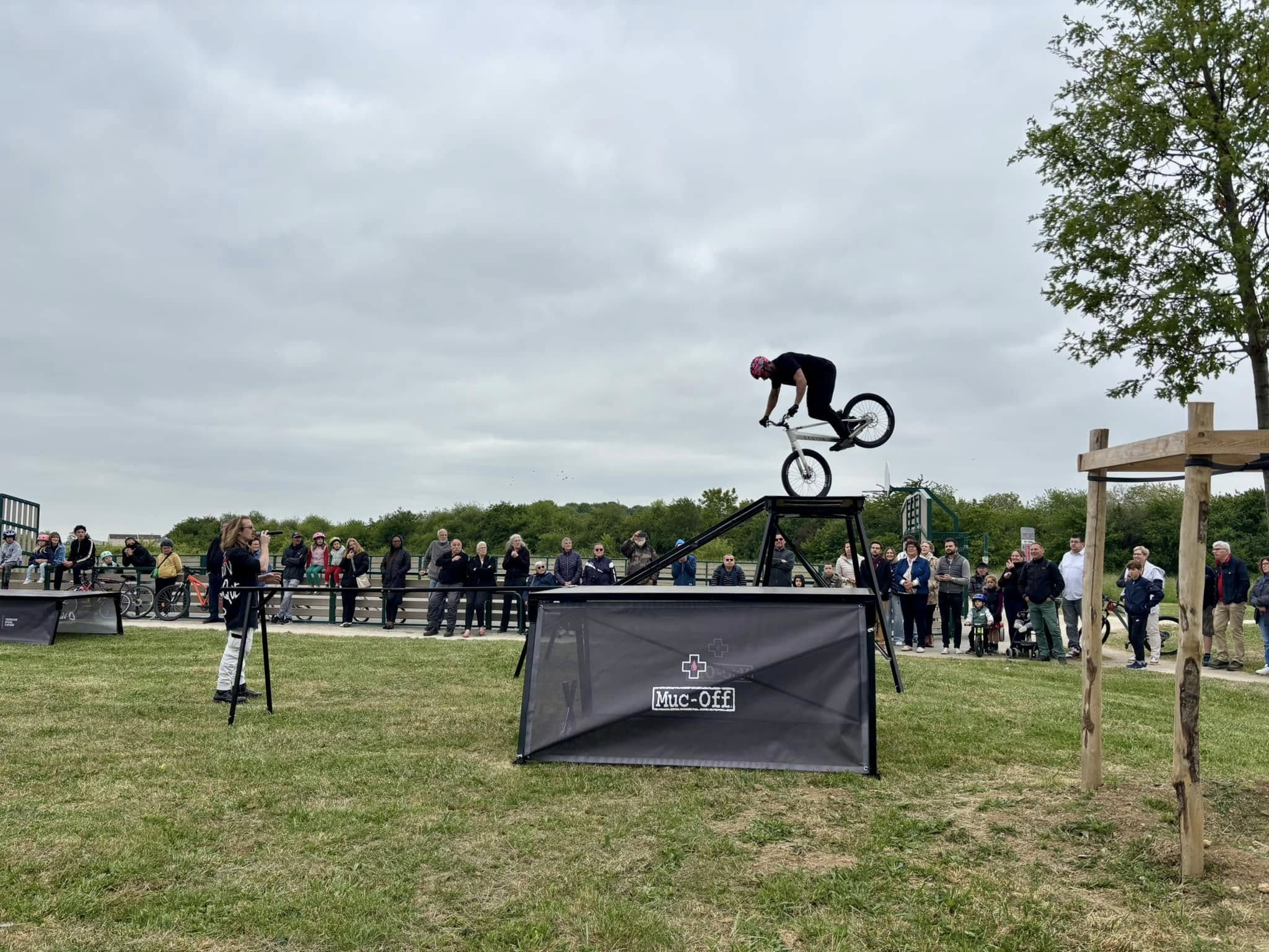 Ce matin, la petite reine était à l’honneur à Angerville, pour une inauguration spectaculaire du pumptrack aux côtés de l’équipe de X-sports shows et de Johann Mittelhausser, maire de la commune !