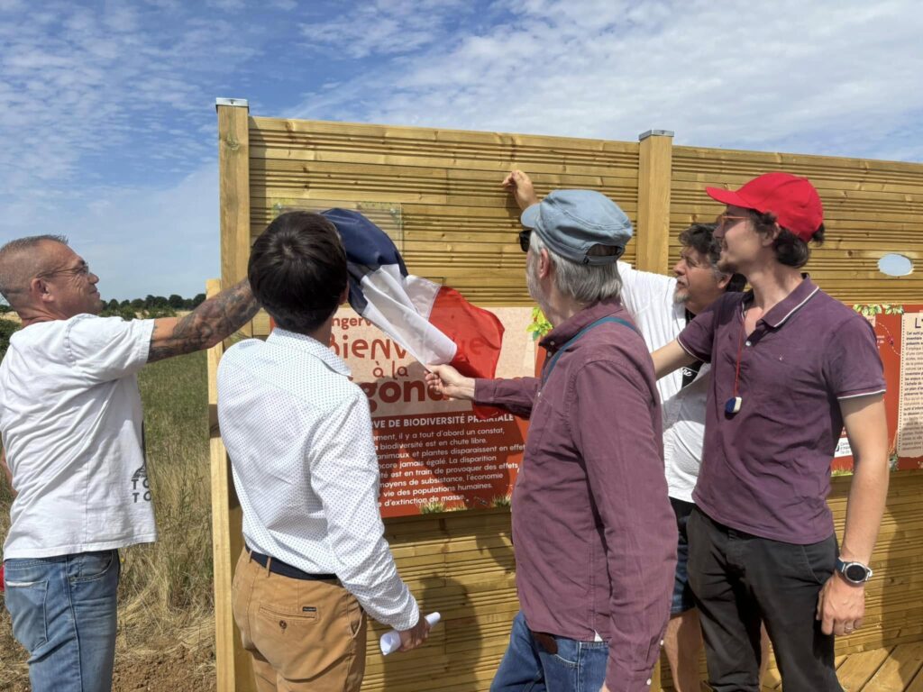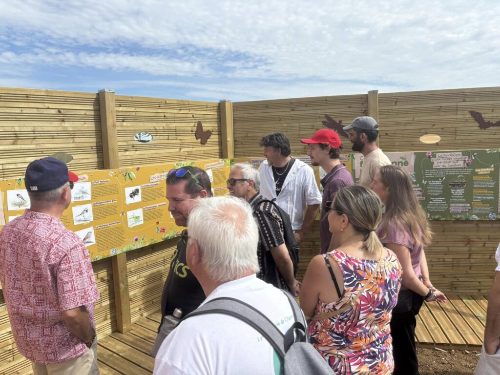 Samedi matin (5 juillet), le Maire, Johann Mittelhausser, son équipe municipale, quelques habitants curieux ainsi que des membres de l’Association ADCA et l’artiste Andy Cassayre, partie prenante du projet, inauguraient un observatoire en bois, au milieu d’une parcelle municipale, anciennement agricole, de 12 hectares en face du lotissement de l’Europe. Là, au milieu de « rien », chants d’oiseaux, bourdonnement et frictions de pattes d’insectes étaient à son comble tout comme le plaisir d’aboutir ce projet pour les élus.