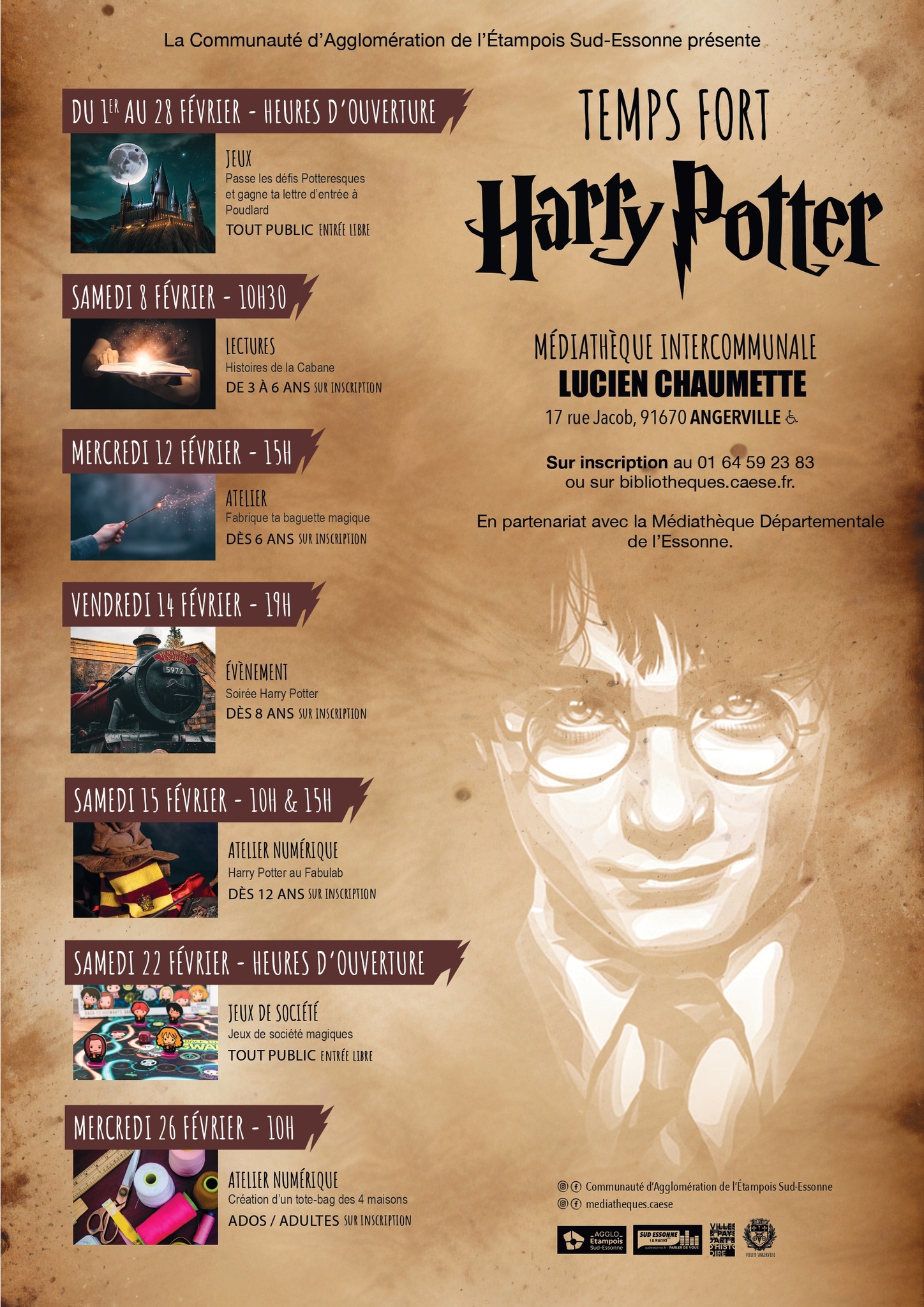 Du 1er au 28 février 2025, Harry Potter prend ses quartiers à la médiathèque intercomunale Lucien Chaumette, rue Jacob à Angerville !