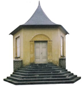 Ce modeste pavillon hexagonal, percé de trois fenêtres, permettait aux dames de suivre la chasse aux perdreaux, très renommée, se déroulant dans la plaine. L’imposant escalier qui le précède, détruit, a été restitué en 1992 à l’identique. L’intérieur, non restauré, a conservé son décor peint en faux marbre.