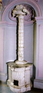 La grande salle à manger du château, dans l’aile gauche, a été fractionnée en trois pièces utilisées par le fermier ayant occupé les lieux. La fontaine placée autrefois en face du poêle a disparu. Celui-ci a conservé sa décoration exotique, typique du XVIIIème siècle. Le tuyau, en forme de palmier, est couronné de feuilles de bananier.