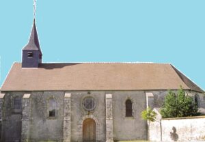 C’est ainsi que l’église d’Angerville dont la construction remonterait au XII ème siècle, traces visibles par sa tour en extérieur et en intérieur par les colonnes du chœur et du sanctuaire, apparaît dans son architecture actuelle du XV ème siècle. L’entrée d’origine ouvrant sur la nef et formée d’un portail au centre applati et jugée incommode a été remplacée par un portail latéral au XV ème siècle. Il aurait été protégé par un porche. Le clocher carré ajouré de fenêtres ogivales est surmonté du toit beauceron à deux pentes, sur ce toit émerge une petite tourelle pointue, comme pour augmenter la faible hauteur du clocher. En intérieur la nef et les bas-cotés sont également représentatifs du remaniement du XV ème siècle. La tour carrée du clocher se terminait, avant la flèche, par un toit en batière, courant dans la région. L’escalier hexagonal fait saillie et se termine par une calotte pyramidale accolée aux contreforts. Jadis un cimetière entourait l’église ; il fut supprimé par lettres patentes de Louis XV en septembre 1764.