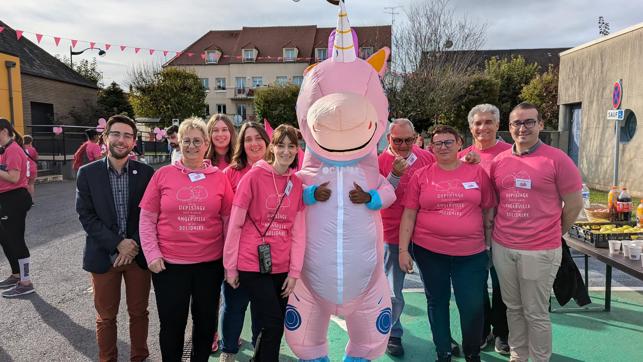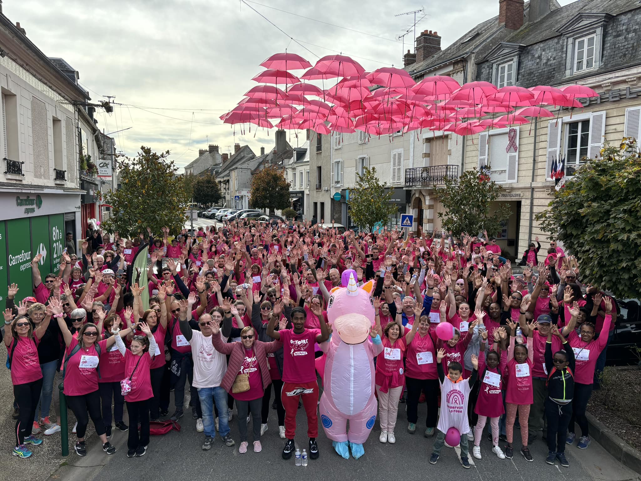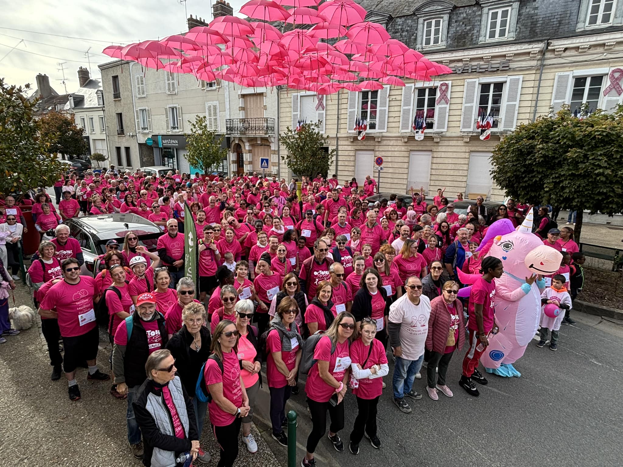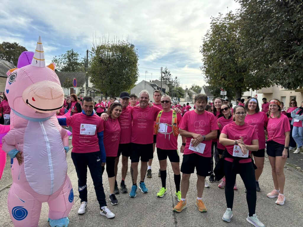 Un grand merci à tous nos partenaires, aux nombreux bénévoles, à notre licorne, à Pascal Bertheau notre coach pour l’échauffement sportif, aux services municipaux (chapeau au passage pour le ciel de parapluies roses devant la mairie) et aux élus, sous la houlette de Christel Thirouin et Jacques Drappier, adjoints au Maire, pour ce bel évènement aux 411 coureurs et 2 716 € de récoltés en faveur de la ligue contre le cancer.