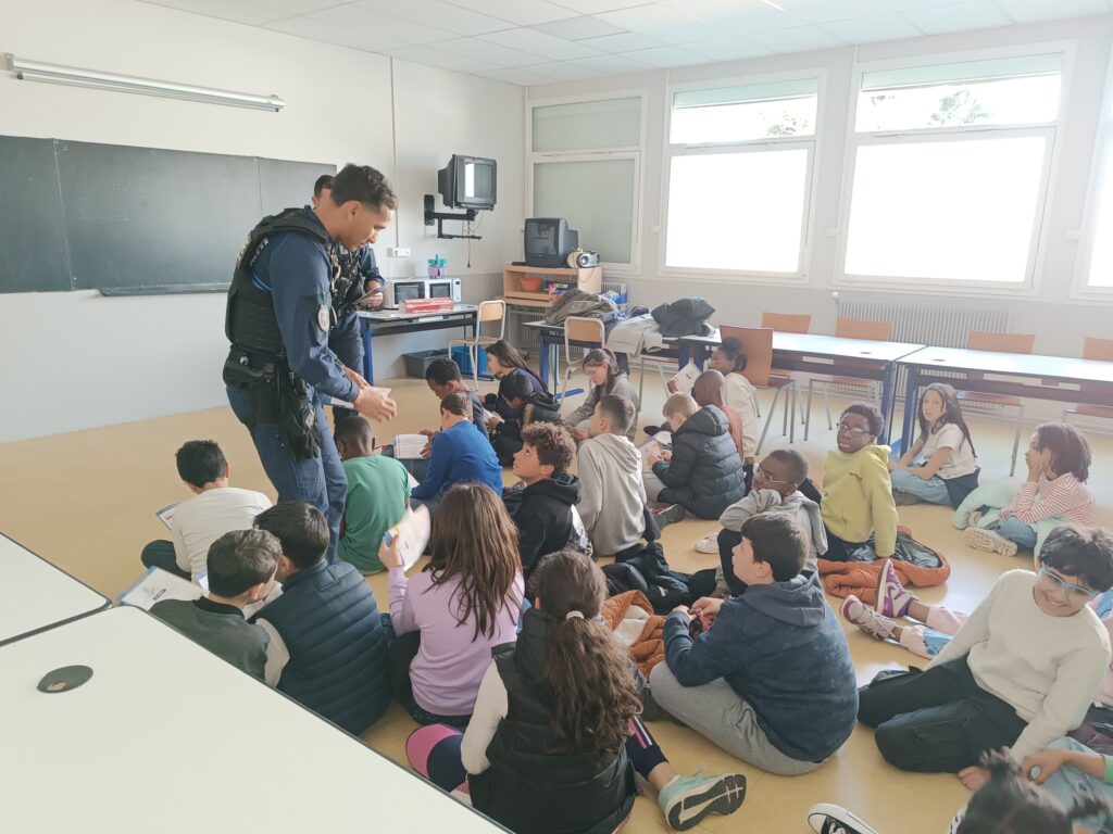 Cet après-midi, au Petit Nice, les agents de la police municipale ont rencontré les élèves de CM2 pour une initiation au permis cycliste, dans le cadre de la dynamique de prévention initiée par la ville.
