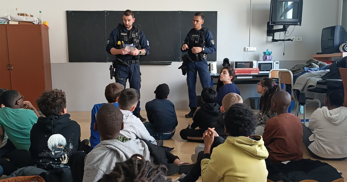 Cet après-midi, au Petit Nice, les agents de la police municipale ont rencontré les élèves de CM2 pour une initiation au permis cycliste, dans le cadre de la dynamique de prévention initiée par la ville.