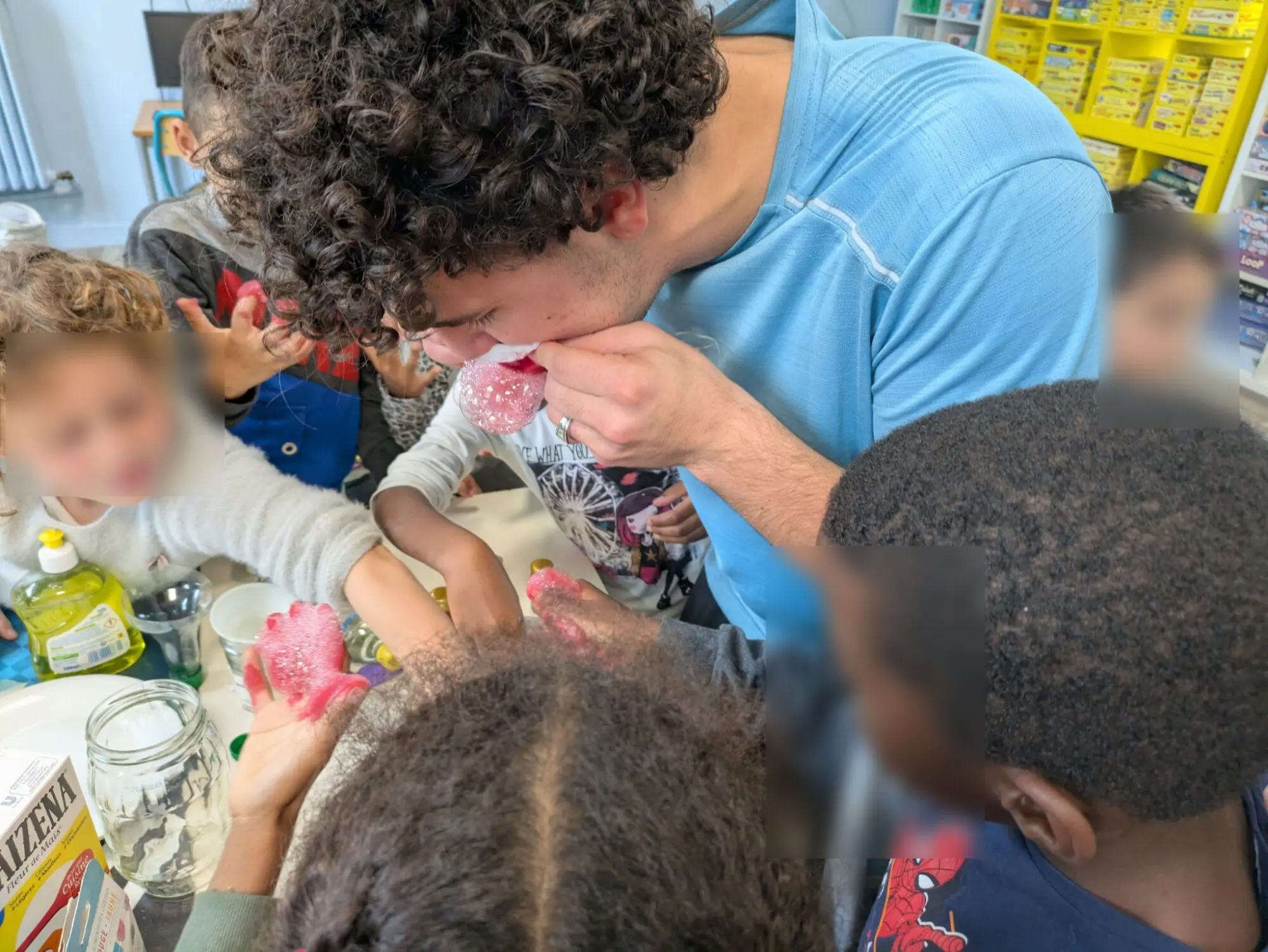 Les plus petits ont mis la main à la pâte (et parfois à la mousse !) avec prof Quentin, qui leur a proposé toute une série d’expériences simples mais spectaculaires :