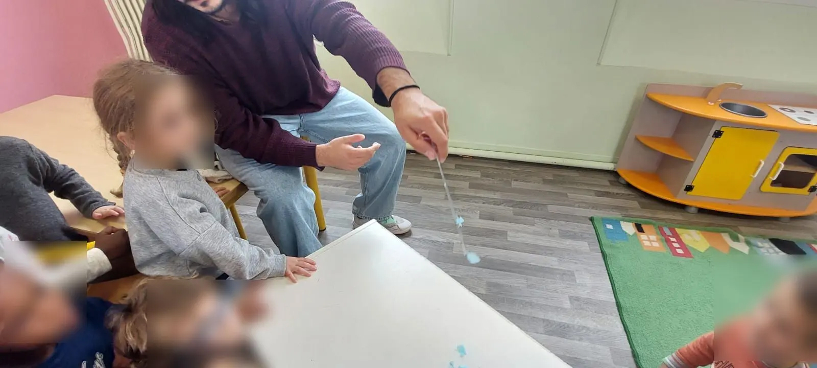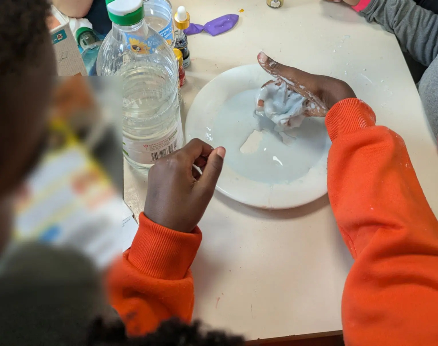 - La pâte magique : mélange de maïzena et d’eau pour un matériau à la fois solide et liquide, selon la pression exercée. Une expérience sensorielle unique que les enfants ont adorée manipuler !