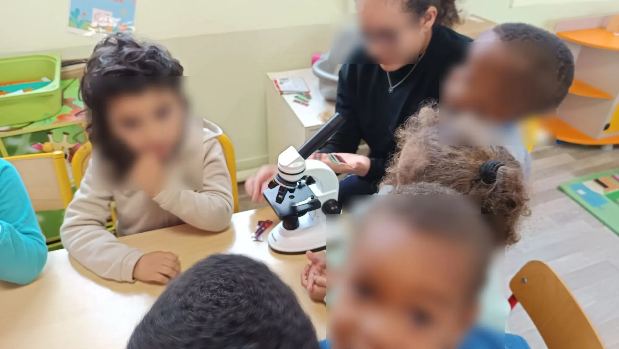 Pendant ce temps, prof Imane proposait une activité d’observation fascinante : les enfants ont pu explorer le monde minuscule au microscope, grâce à des lames déjà préparées. Les visages émerveillés devant les détails invisibles à l’œil nu valaient le détour !