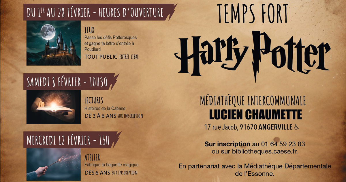 Du 1er au 28 février 2025, Harry Potter prend ses quartiers à la médiathèque intercomunale Lucien Chaumette, rue Jacob à Angerville !