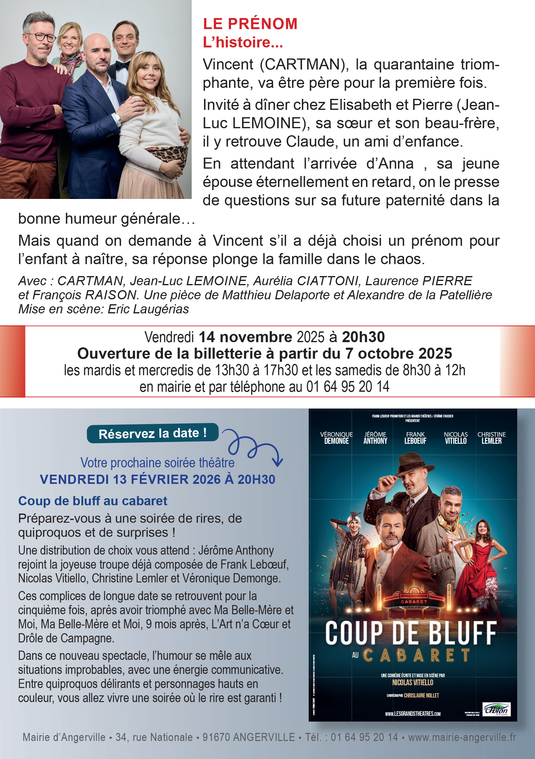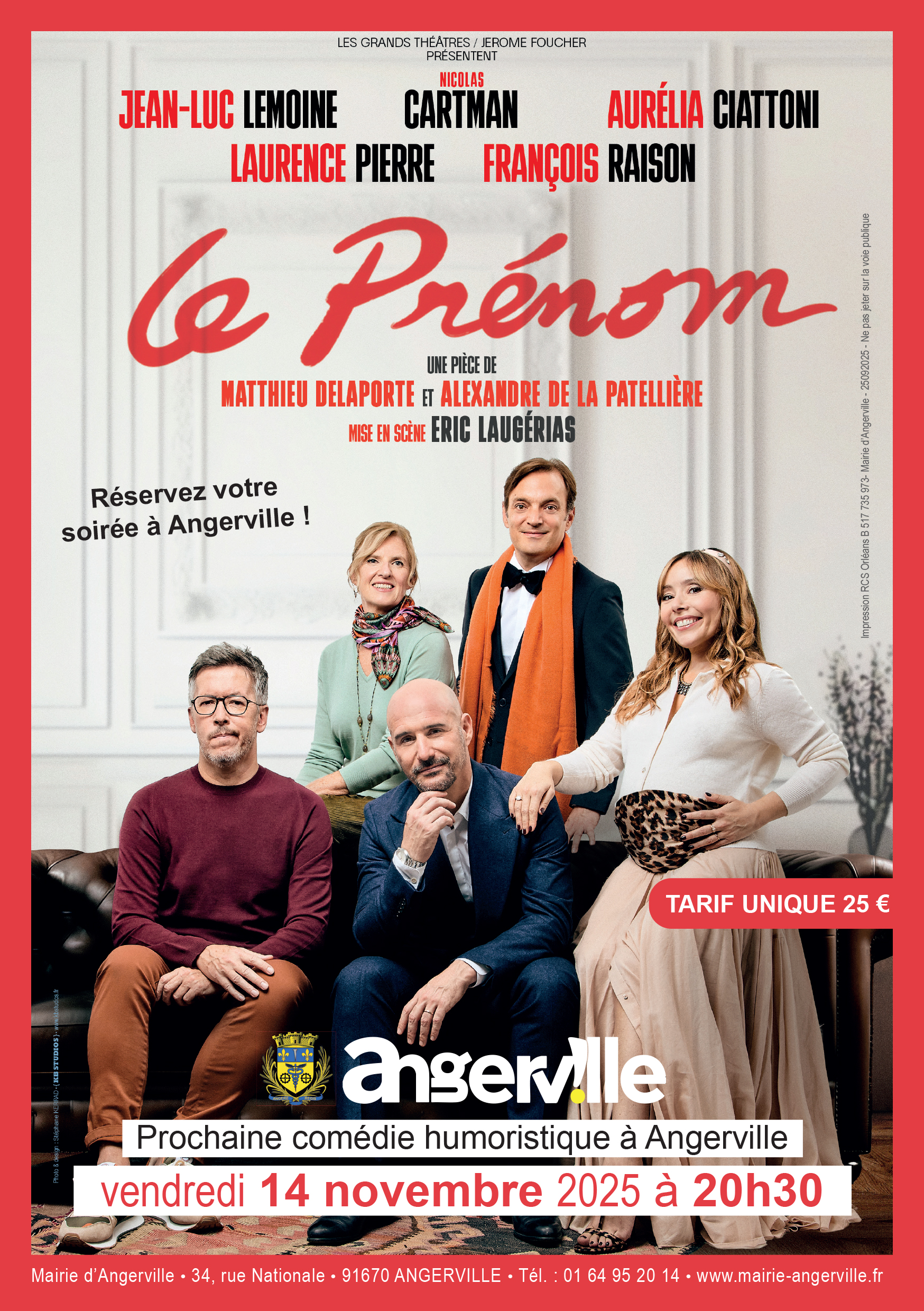 Saurez-vous deviner le prénom qui va mettre le feu aux poudres, le vendredi 14 novembre à la salle polyvalente Guy Bonin ? Cartman, Jean-Luc Lemoine, Aurélia Ciattoni, Laurence Pierre et François Raison vous donnent rendez-vous pour une comédie piquante et savoureuse à ne pas manquer !