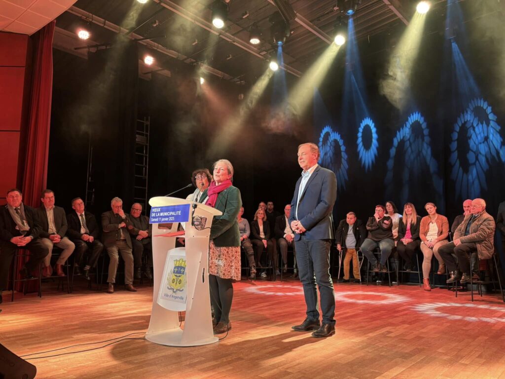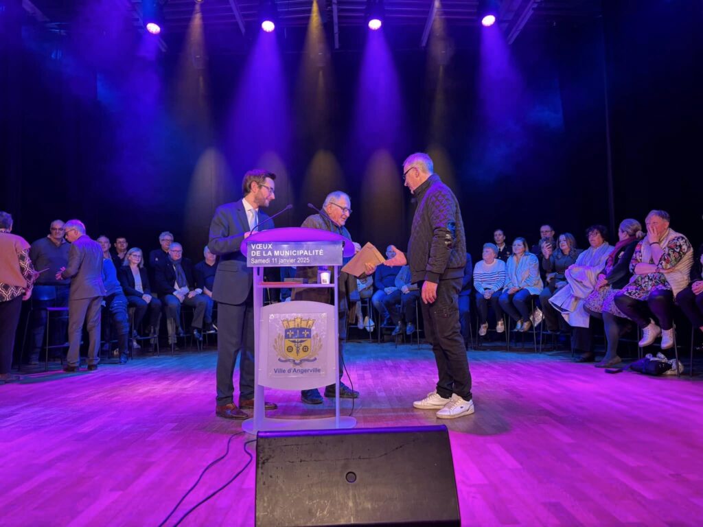 Introduite par le groupe Rosy Lux avec Maïté Vilar, artiste multidisciplinaire de la commune, cette cérémonie était résolument optimiste. Sans tomber pour autant dans l’angélisme, le Maire Johann Mittelhausser a en effet indiqué : qu’ « ici à Angerville, c’est un esprit combatif et déterminé qui nous a toujours animé, et l’année 2024, que nous venons de refermer l’a particulièrement incarné, notamment à travers le dispositif Petite Ville de Demain. En 4 ans, la ville a investi pas moins de 10 millions d’euros pour offrir le meilleur cadre de vie à ses habitants ».