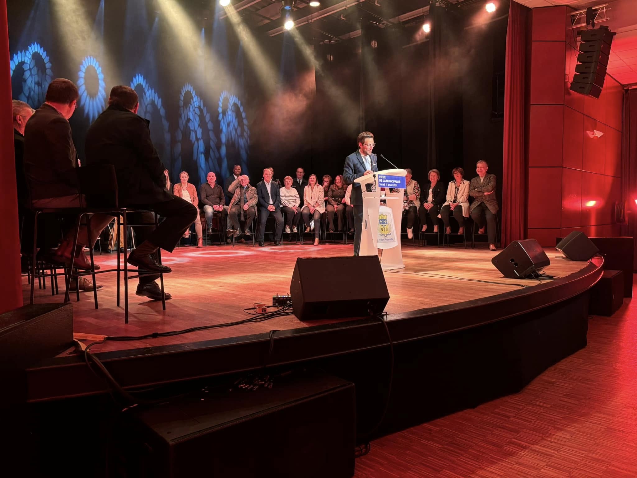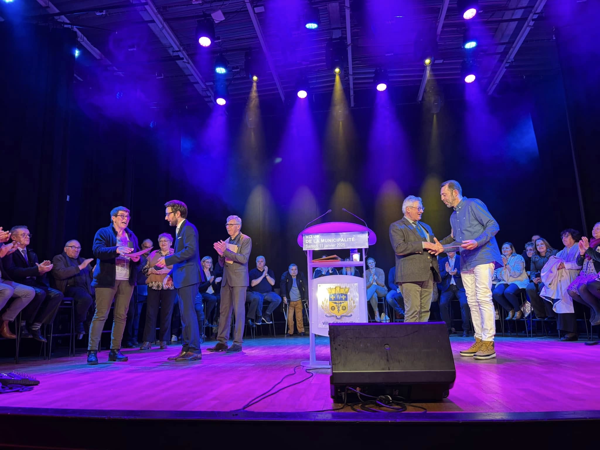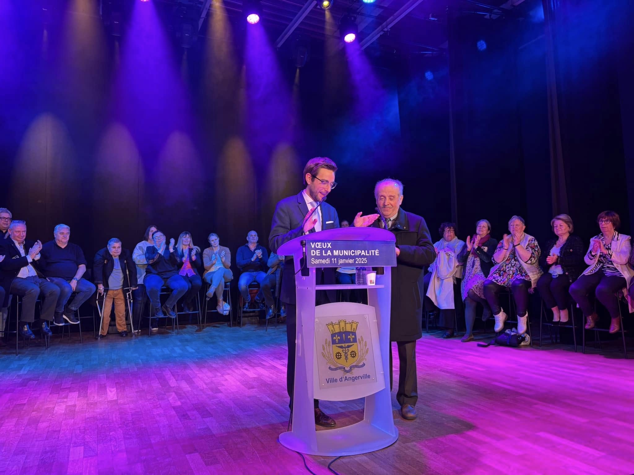 Introduite par le groupe Rosy Lux avec Maïté Vilar, artiste multidisciplinaire de la commune, cette cérémonie était résolument optimiste. Sans tomber pour autant dans l’angélisme, le Maire Johann Mittelhausser a en effet indiqué : qu’ « ici à Angerville, c’est un esprit combatif et déterminé qui nous a toujours animé, et l’année 2024, que nous venons de refermer l’a particulièrement incarné, notamment à travers le dispositif Petite Ville de Demain. En 4 ans, la ville a investi pas moins de 10 millions d’euros pour offrir le meilleur cadre de vie à ses habitants ».