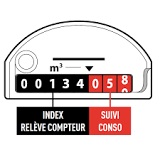* L’index correspond aux chiffres sur fond noir de votre compteur d’eau, comme sur l’exemple ci-contre
