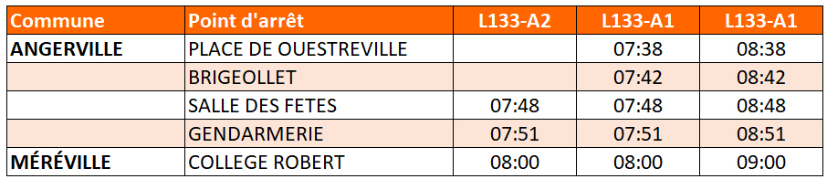 Le ramassage scolaire est organisé par la commune au bénéfice des enfants scolarisés dans les écoles maternelle et élémentaire d’Angerville, habitant les hameaux de Dommerville, Ouestreville, Villeneuve et le lotissement de l’Europe.