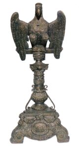 La dimension de ce lutrin, richement sculpté, est disproportionnée dans cette église modeste. La base, triangulaire, est décorée de chimères inscrites dans des volutes. La tige, en forme de balustre, est ornée de feuilles d’acanthe. Elle est couronnée d’un chapiteau sculpté de chérubins ailés. Un aigle aux ailes déployées est accroché à une sphère posée sur la plateforme. L’inscription indique l’origine de cet imposant pupitre destiné à recevoir les chants liturgiques : « Trois marguilliers ont fait faire en 1688 cette oeuvre : Jean David, François Friteau et Jean Delafoy ».