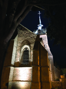 De nos jours une partie de cet espace est construit. Le portail de l’église situé à l’ouest est de la fin du XV ème siècle, 2 colonnes d’époque romane du XII ème siècle ont été réutilisées lors de la construction du portail et du pignon ouest. Le vitrail qui orne la fenêtre ogivale trilobée à sa partie supérieure, représente le retour de l’enfant prodigue. En son intérieur on peut remarquer la nef composée de 3 arches ogivales reposant sur des piliers dissemblables ; la nef est perfaitement voutée et présente des arêtes munies chacune d’une nervure prismatique, dont les moulures viennent se fondre dans le pilier.