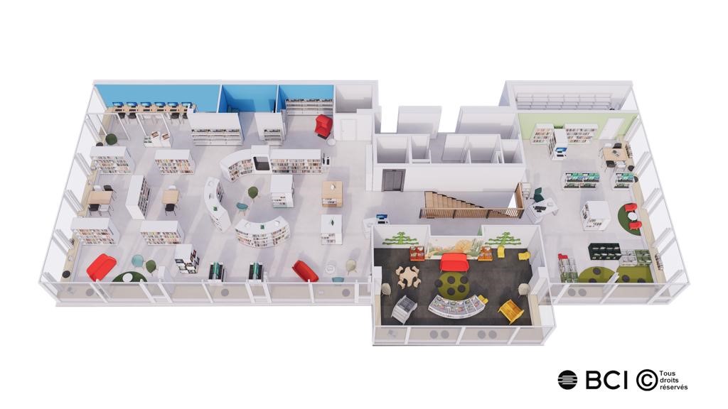 • La Pépinière, qui abrite les collections jeunesse : albums, romans, BD, mangas, et magazines